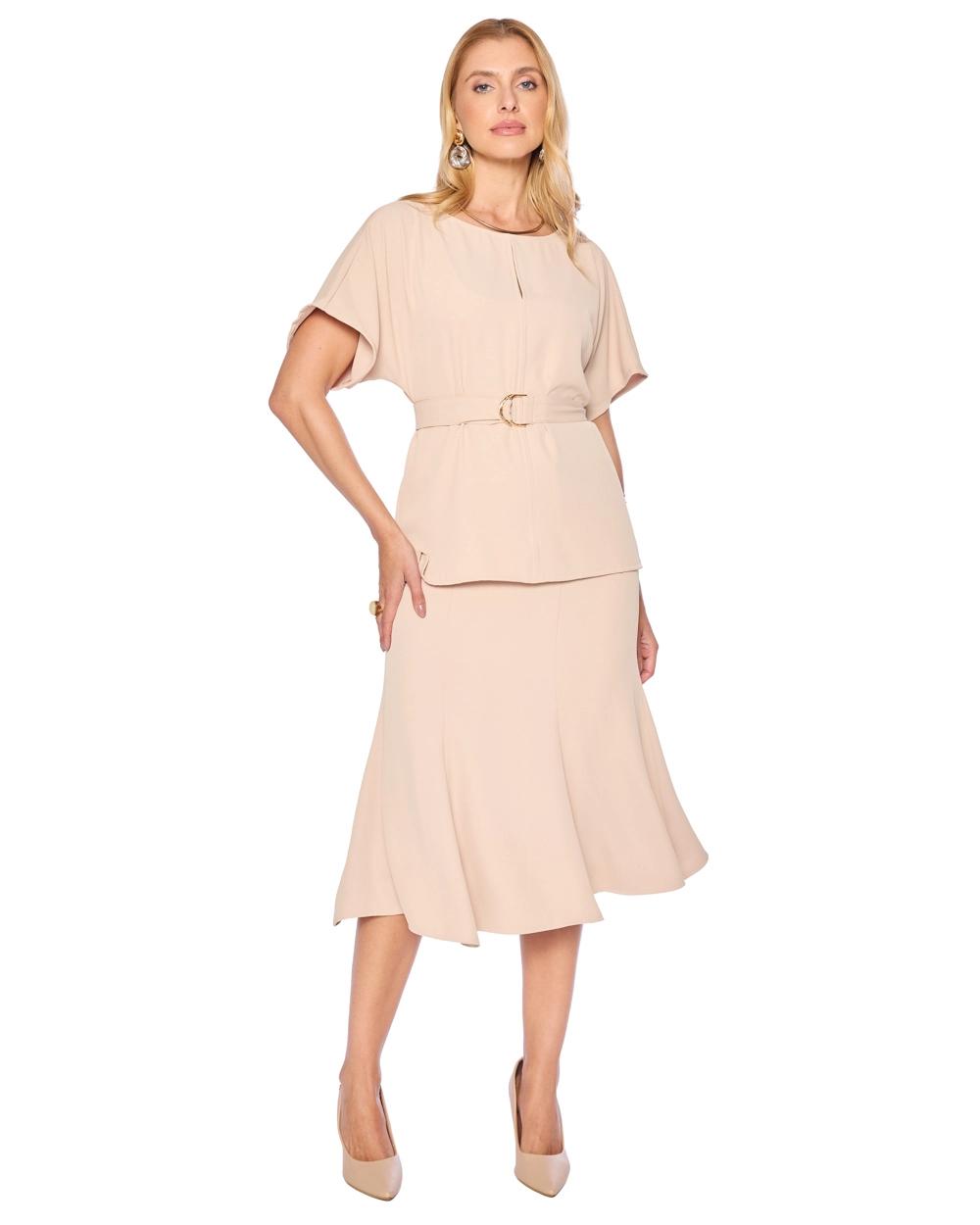 CONJUNTO EM TECIDO ZEENA. ACOMPANHA FAIXA COM FIVELA.